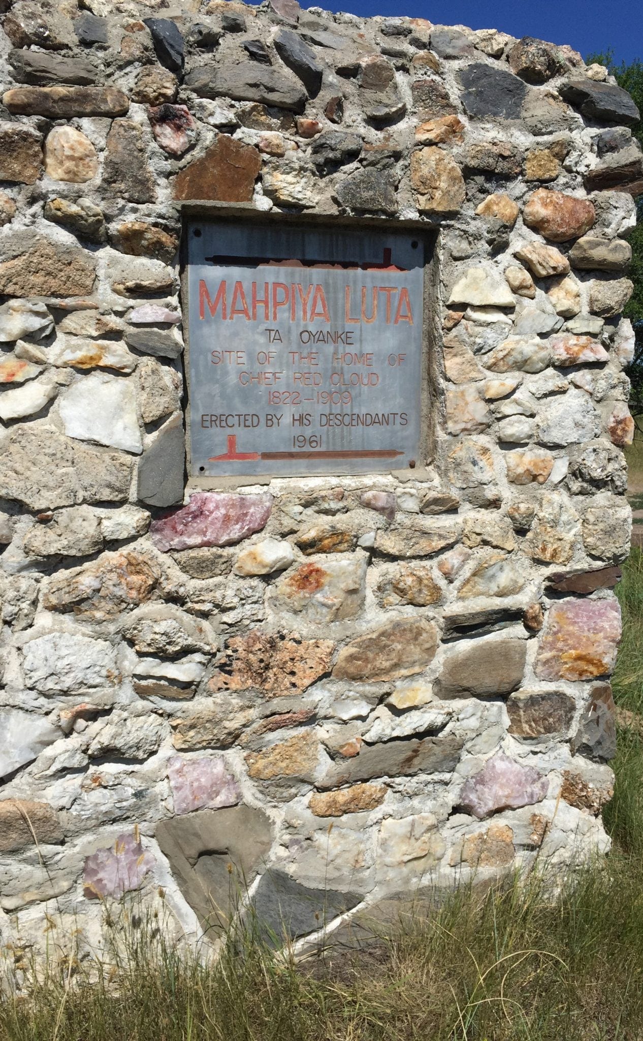 Bobbi Red Cloud, great granddaughter to Chief Red Cloud, at the Red Cloud Monument (that’s our bus in the bottom photo)
