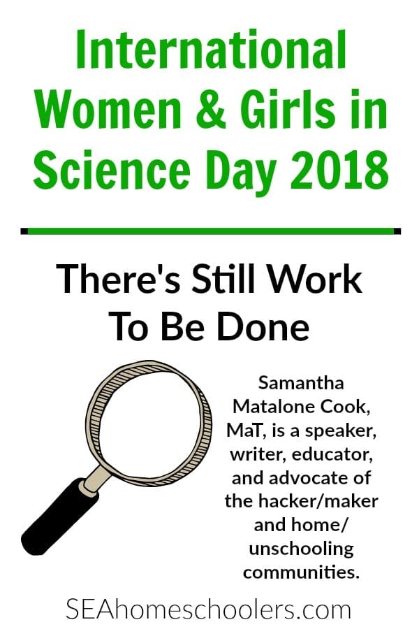 Just as important than all of the above, though, is the relationship we foster between girls and science from the very beginning. Read books on science and scientists, particularly female scientists. Cultivate an environment of slow science, where observation and appreciation become a sensory experience. Provide an abundance of ingredients and materials to experiment with. Build a relationship with technology that serves as a tool – not just for education but for enjoyment and for community building. Stop shaming children for asking questions, making messes, or for the interests they are passionate about. Examine your language for gender assumptions around science and technology. Stop telling your kids they are smart and start telling them they are capable, good problem solvers, or innovative. Stop telling kids they should go into science or technology just because they’ll get a great paying job, and encourage them to choose their work based on passions and strengths. Look for ways science and technology has changed lives and helped people, particularly for women and girls. Elevate the acquisition of science literacy in your home and in your community. Demand family friendly legislation from your elected officials. Elect more women. Donate to scientific studies led by women. Donate to Kickstarters in which women are designing new technology projects. Finally, when your girls are older, share this history and its bias with them so that they know what we celebrate every year.